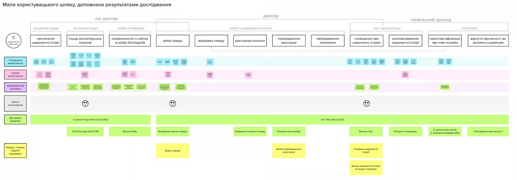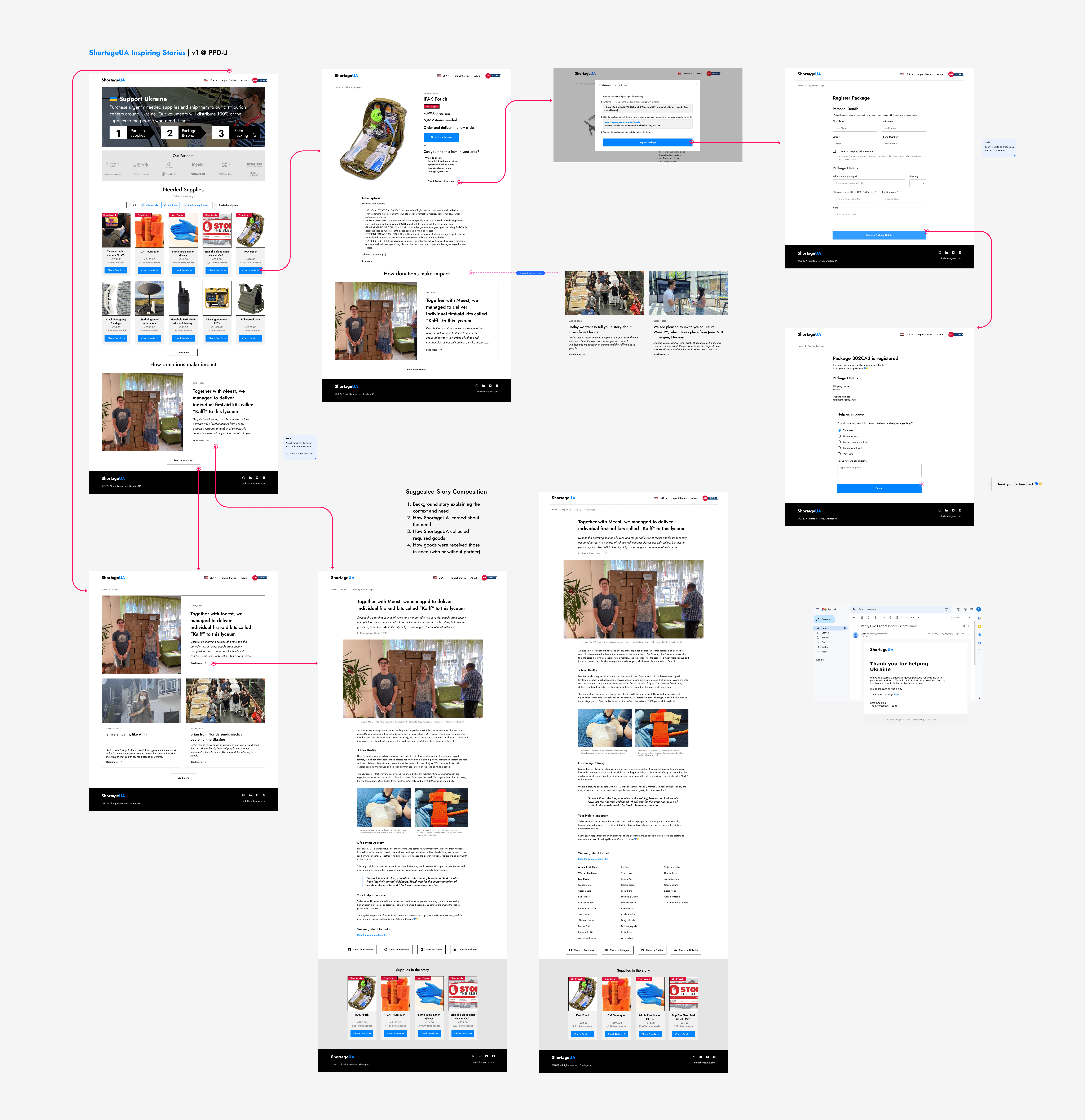 ShortageUA wanted to understand whether adding impact stories to donation flows could improve trust, strengthen transparency, and ultimately increase successful donations. Tanya and I led user research, journey mapping, and concept validation to evaluate this opportunity. Two rounds of comparative testing showed that while stories improved emotional engagement, they did not meaningfully increase perceived trust or usefulness. The findings revealed that donors rely more on operational transparency and credibility signals than on narrative content alone — shaping clear recommendations for where the platform should invest next.